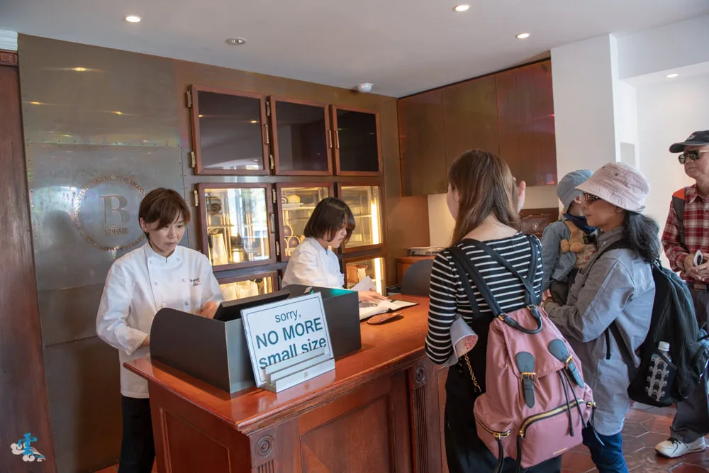 剛到門口,人潮果然不少,還好女王有先預約,所以直接跟櫃台確認後就拿到蛋糕了,不過事後想想,我們要買的不是小尺吋的瑞士捲,所以似乎也不需要預約才是~哈。果不其然,早上十點才營業的B-SPEAK,快中午時間小尺吋的瑞士捲已售完。店內空間雖然不大,簡單乾淨明亮的氛圍讓人覺得挺舒適的,店內雖然有椅子,但是不能在店內食用蛋糕喔。所以就會看到一堆遊客直接在店門外,直接就開始享用了說。