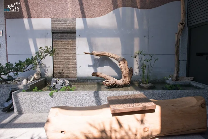 兩棟門前的停車場~皆被用心打造成頗具禪意的空間