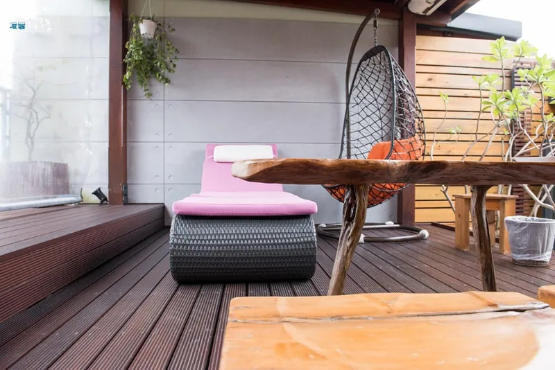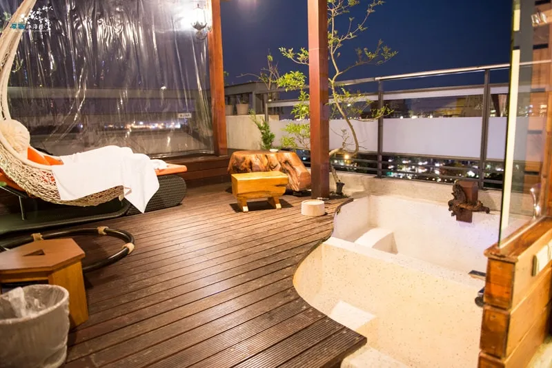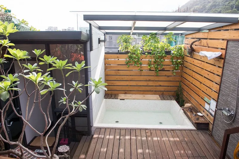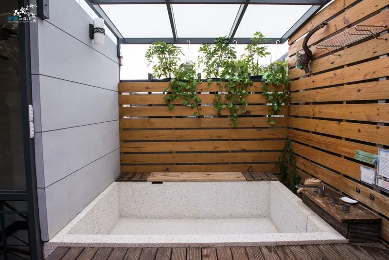 沿著房間內的另一個樓梯~即可抵達專屬的露天湯區
